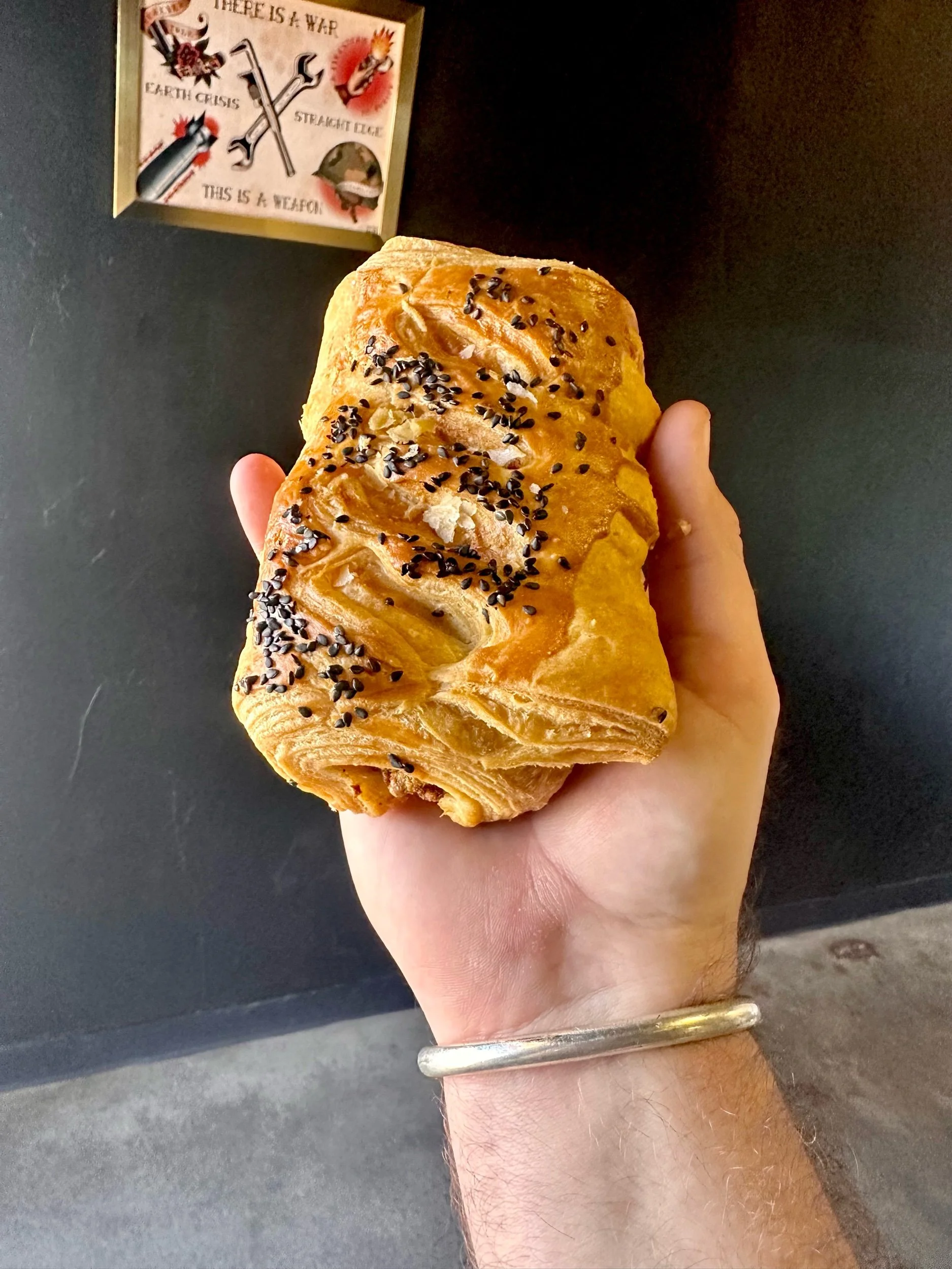 Sausage Rolls: house made flaky puff pastry baked around vegan english breakfast sausage
